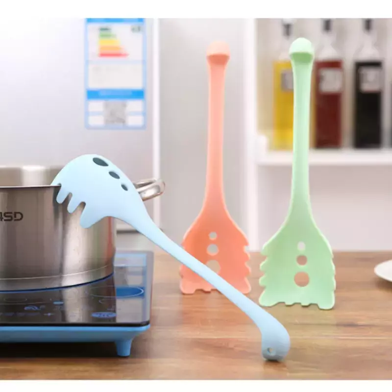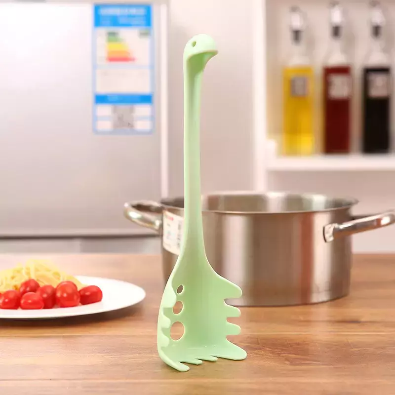Este cucharón con diseño de dinosaurio transforma la hora de la comida en una divertida aventura prehistórica. Fabricado en plástico resistente y seguro, es perfecto para servir tallarines, pasta o cualquier plato. Su forma única de dinosaurio encantará a niños y fanáticos, haciendo de cada comida un momento divertido y creativo. ¡Un utensilio funcional y lleno de estilo!"